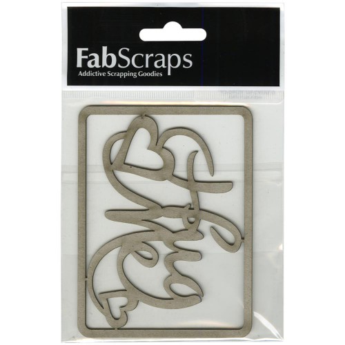 FabScraps chipboard teksten of figuren worden in een chipboard frame geleverd in de verpakking en kunnen, indien gewenst, met een scherp mesje of schaartje worden losgesneden.