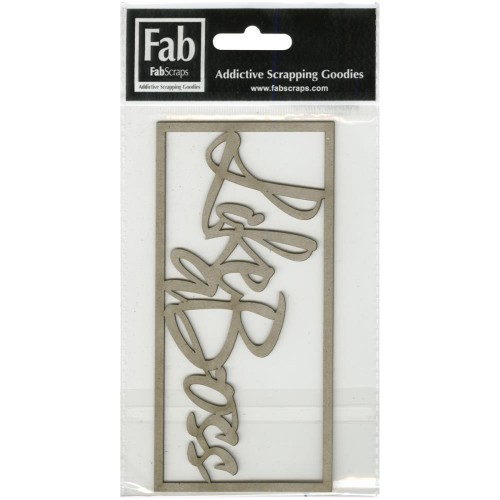 FabScraps chipboard teksten of figuren worden in een chipboard frame geleverd in de verpakking en kunnen, indien gewenst, met een scherp mesje of schaartje worden losgesneden.