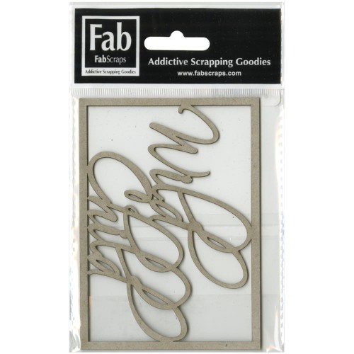 FabScraps chipboard teksten of figuren worden in een chipboard frame geleverd in de verpakking en kunnen, indien gewenst, met een scherp mesje of schaartje worden losgesneden.