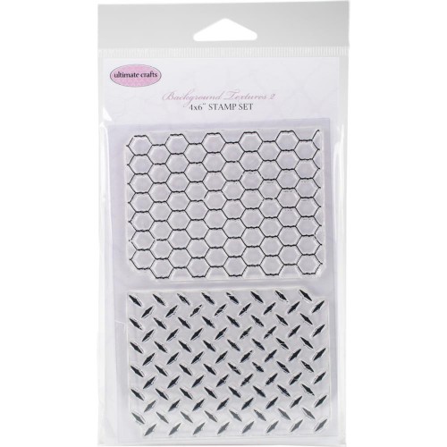 Merk: Ultimate Crafts. Checker and Chicken Background stamps, ULT157633. Bevat twee stempels. Afmeting per stempel ongeveer 9 x 7 cm.