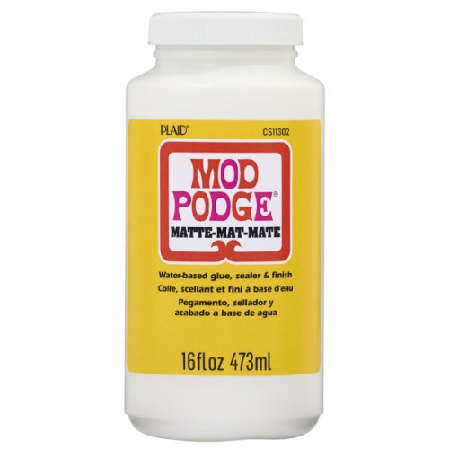 Mod Podge van het merk Plaid is lijm, lak en bescherming in één. Dit populaire hobbyproduct is op waterbasis, droogt transparant op en is verkrijgbaar in onder andere een matte en glanzende afwerking. Uitermate geschikt voor allerlei decoupage projectjes. Breng de Mod Podge aan met een platte kwast en laat goed drogen.