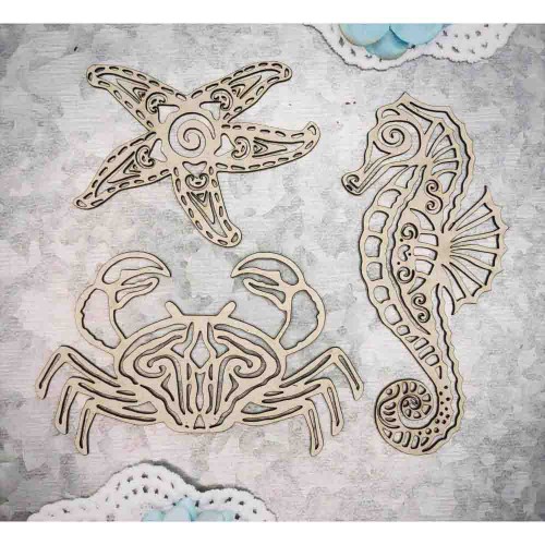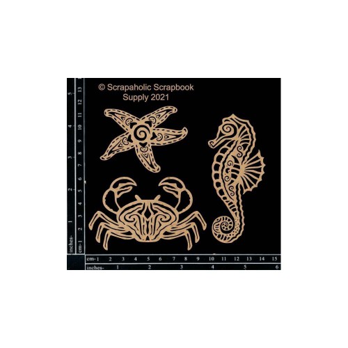 Afmeting zeepaardje ongeveer 4,5 x 10 cm, afmeting krab ongeveer 9,5 x 5,5 cm, afmeting zeester ongeveer 7,5 x 5,5 cm.