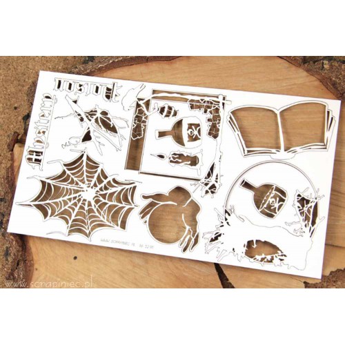 Het Scrapiniec chipboard wordt als plaatje geleverd in de verpakking om de figuurtjes te beschermen tijdens transport. De vormen zijn hierin voorgestanst, maar zitten ieder op 1 of 2 puntjes nog vast aan het plaatje. Snijd deze puntjes voorzichtig los met een scherp mesje en de chipboard figuren kunnen uit het plaatje worden gehaald.