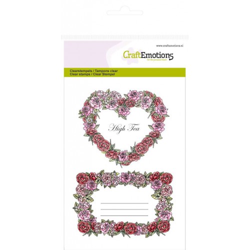 Merk: CraftEmotions. Nummer: High Tea Rose - Roses labels - 1064. Afmeting vel: A6. Bevat 4 stempels.